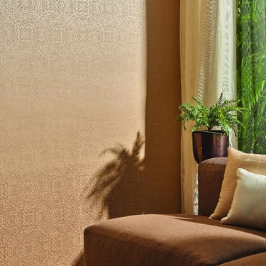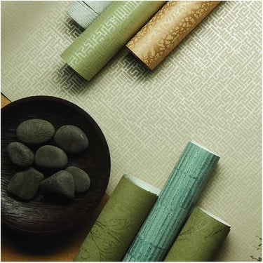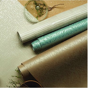 Acabados: Acabado papel tapiz vinílico con detalles metálicos.